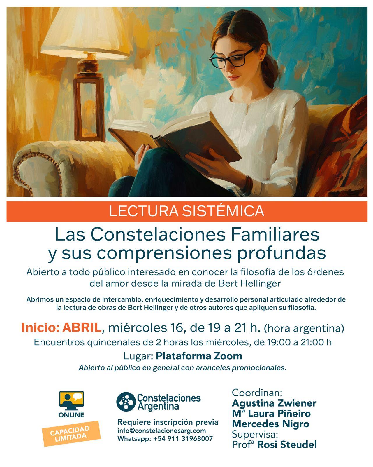 Trabajaremos con lectura de obras de Bert Hellinger y de otros autores que apliquen su filosofía.